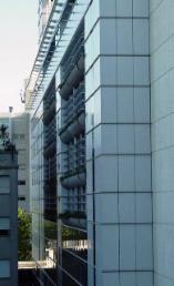 Estudio Marshall & Asociados logró para las fachadas laterales mas extendidas una solución con antepechos ciegos que permiten tener importantes sectores opacos, excelentemente aislados térmicamente y por encima largas tiras de vidrios visión que fueron provistos de cristales dobles de alta performance térmica y lumínica. En las fachadas de frente a las calles Libertador y Bartolomé Cruz el planteo fue diferente. Preferimos usar frentes totalmente transparentes pero también con cristales dobles de alta performance en este caso compuestos por vidrios laminados de seguridad. Lo interesante de todo es que se logró resolver la totalidad de los sistemas de muro cortina con un sistema constructivo tipo "Frame" que permitió construir las fachadas en módulos de aluminio, en el taller, mientras que en la obra se completaba la estructura de hormigón, otorgándole a la obra la dinámica requerida.